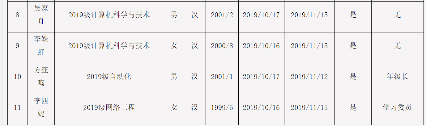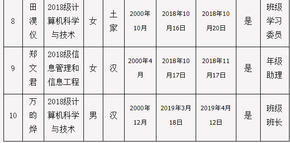黄漫 党委关于确定武秀娟等11名同志为发展对象的公示经2019级本科党支部培养考察,在听取党小组、培养联系人、党员和群众意见的基础上,经党支部(或支委会)讨论,确定武秀娟等11位同志为发展对象。...
