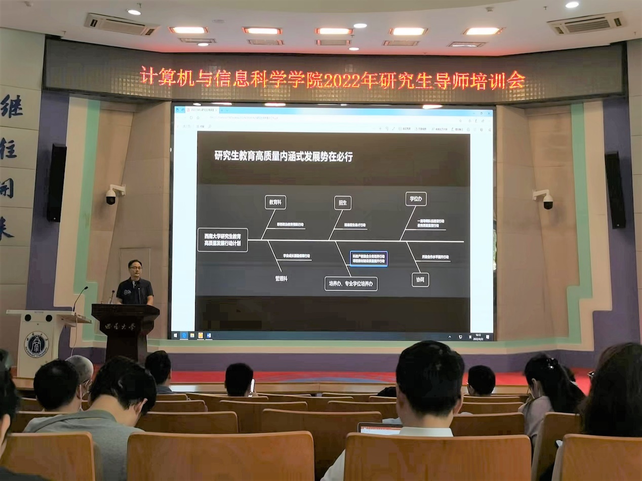 4月22日,肖国强院长就《研究生学位论文质量提升举措,良好导学关系构建》做了专题讲座。肖国强院长强调以制度化、规范化和精品化管理模式为抓手,全面提升研究生培养关键环节及学位论文质量。结合学校最新政策文件、黄漫