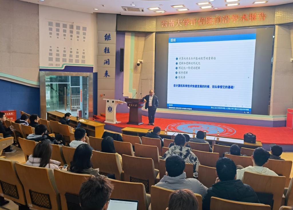 全场报告会气氛活跃,董教授和刘教授深入浅出的报告让师生们受益匪浅,了解到蜕变测试可以利用程序输入和输出的关系来检测程序是否包含错误,是开展智能系统测试的有效手段。同时也认识到数理逻辑对于计算机领域的科学研究和日常学习生活均具有举足轻重的作用。
