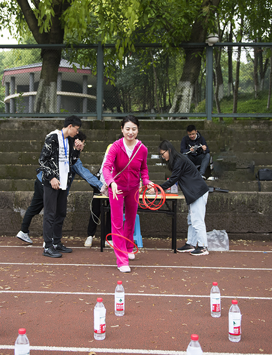 趣味运动螃蟹运球、快乐套圈、趣味飞镖、珠行万里、智传呼啦圈等项目也吸引着老师和同学们的眼光,大家纷纷组队参与,在运动中增进沟通和友谊。