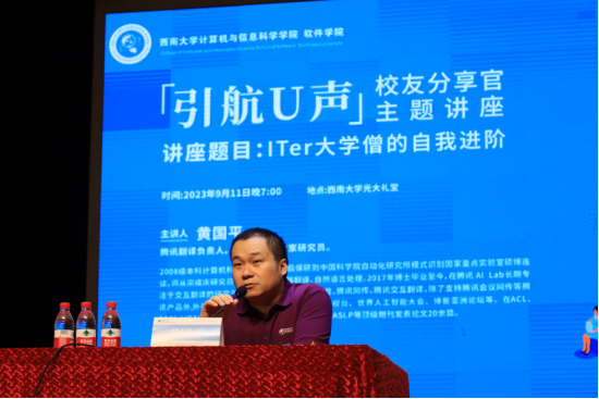2008级校友、腾讯翻译负责人、AI Lab专家研究员黄国平作主题报告。