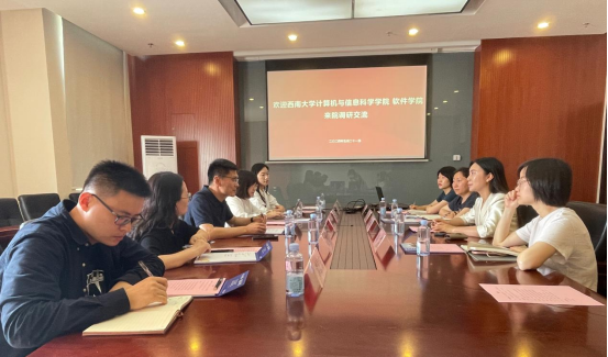 党委书记李天瑞、党委副书记肖静、办公室主任陈延云、学工组副组长李裕等座谈交流。李天瑞书记介绍了西南交通大学计算机与人工智能黄漫