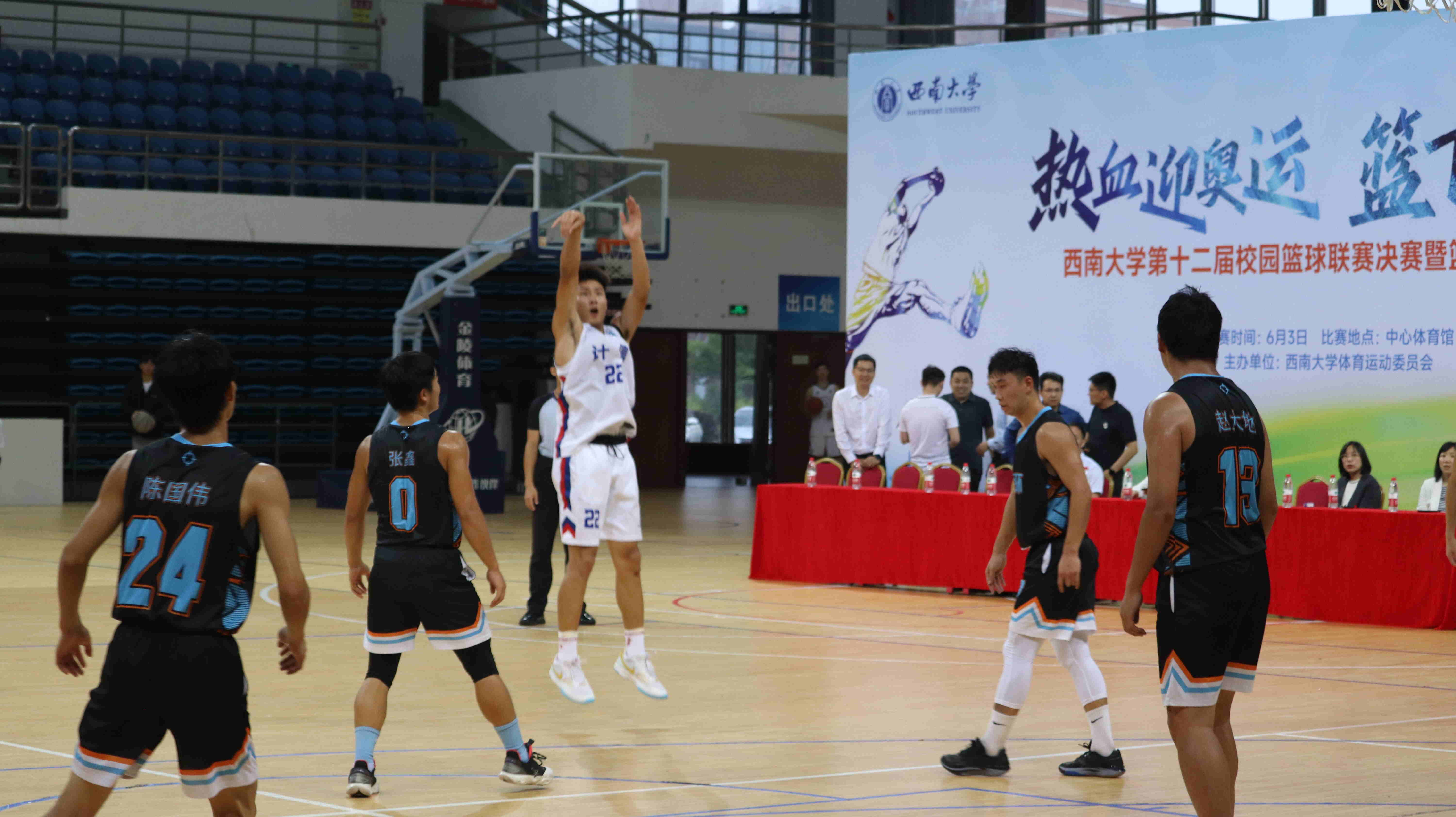 第十二届校园篮球联赛决赛在计信院与资环院之间展开激烈角逐。经过紧张刺激的比赛,计信院篮球队凭借出色的团队协作和精湛的篮球技艺,成功击败对手,赢得本场比赛的胜利,同时也实现了四连冠的壮举。