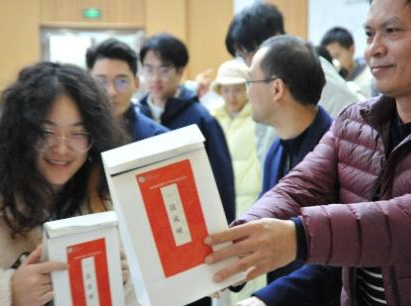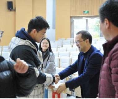 最后,老师们为考研学子派发专属考研加油大礼包,并与同学们一一握手、加油打气。黄漫