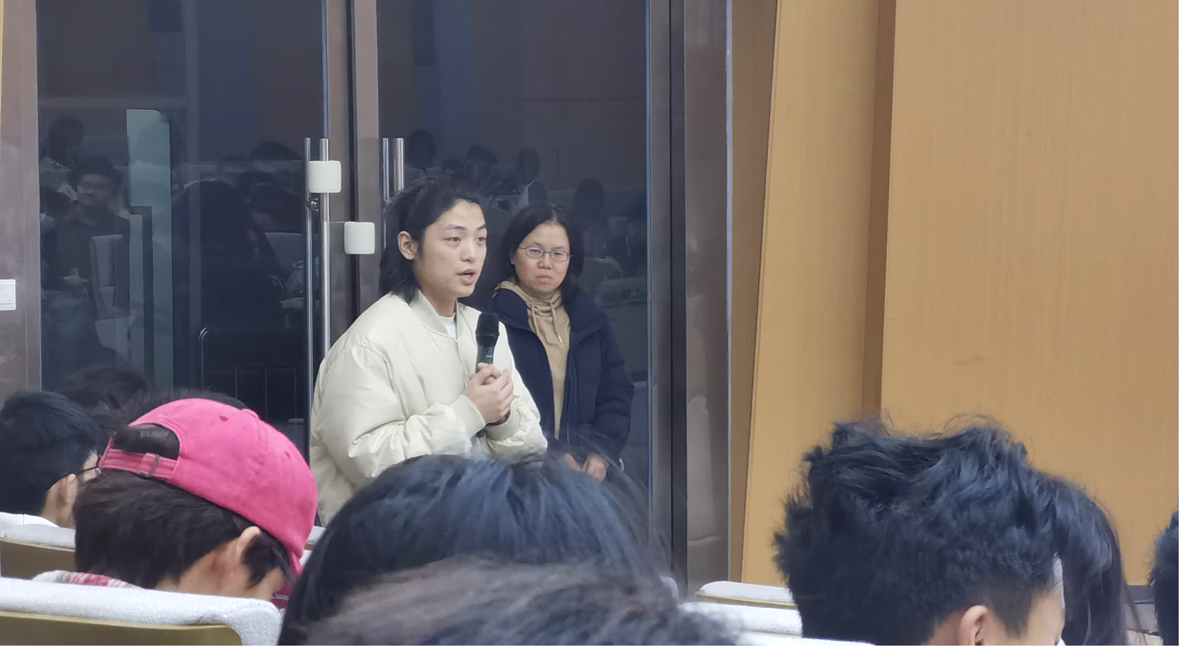 图2:周顺开、刘佳城、邓清月做分享与同学现场提问