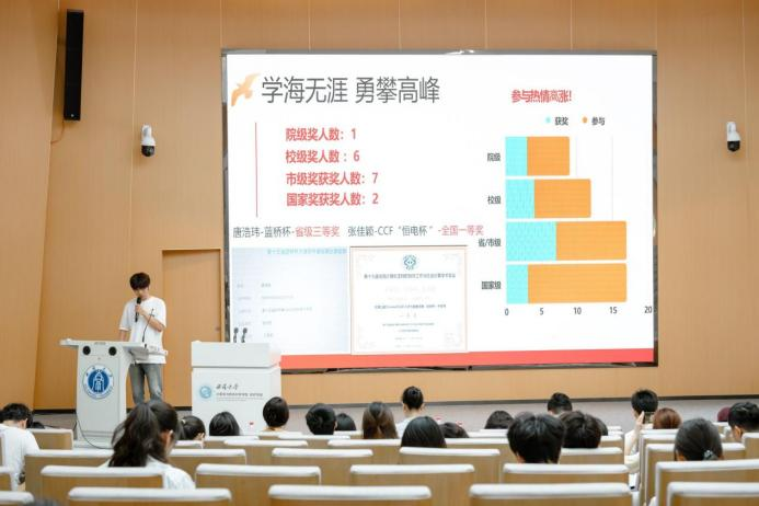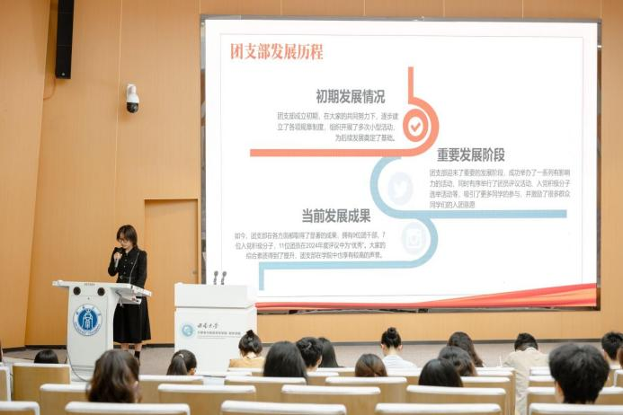 答辩现场展风采,青春答卷显担当。经过前期材料审核,各团支部积极展示自身成果,参与现场答辩,争当五四红旗团支部。展示过程中,各支部通过PPT、短视频、现场演讲等形式,从“思想引领、组织建设、学风建设、社会实践、特色创新”等多个维度生动展现了他们在过去一年中的工作亮点和成就展开汇报。