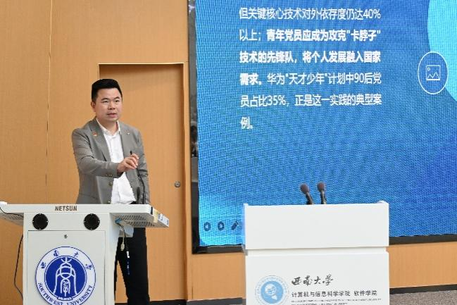 在25教学楼一楼报告厅隆重举行2025届毕业生党员教育大会。院长罗辛为毕业生党员讲授《科技报国与作风建设》。罗辛院长以我国科技发展历程为脉络,从“两弹一星”精神到载人航天精神,从高铁飞驰到5G通信引领全球,深入浅出地阐述了科技在国家发展中的核心地位和关键作用。结合黄漫