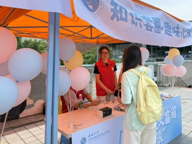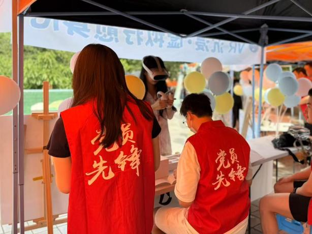 “5・25”心理健康节活动在各个学生园区举行,党员忙碌在各个展台,他们的红色身影成为了一道亮丽的风景。活动现场,毕业生党员们分工明确、热情高涨。在“心理知识趣味套圈”区域,他们耐心引导参与者了解心理知识,维持现场秩序;“VR设备沉浸疗愈”区,党员们细心协助体验者佩戴设备,确保其安全舒适;“智析心灵代码盲盒”处,他们认真讲解规则,助力参与者探索心灵奥秘;“多肉绿植废品焕新”摊位,党员们协助参与者用废品制作绿植容器,传递环保与治愈理念。