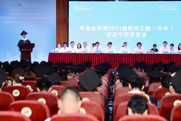老师四年的栽培,感谢家人风雨无阻的守候,感谢同学们笑泪与共的陪伴。宋启宁深情地表示,自己的毕业行囊里装载着三样特别的“珍宝”:第一件珍宝是图书馆里写满批注的编程书,它点燃的是对知识永不满足的好奇心。第二件珍宝是那双跑鞋里磨破的鞋垫,它承载的是持续奔跑、永不言弃的韧劲。第三件珍宝是支教时一名儿童送给他的铅笔放学路线图,它勾勒出的是教育最朴素也最温暖的承诺。