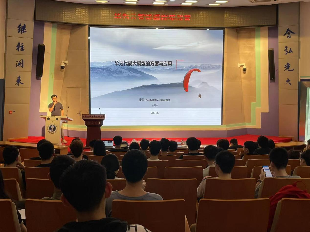 联合华为云举办智能编程实战营专家讲堂——“华为代码大模型的方案与应用”。本次活动邀请到华为云工程师秦攀、晏力以及华为云技术支持刘梓煊,共吸引一百余名本科生、研究生参加学习。
