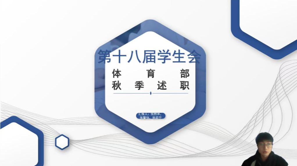 同学营造良好的体育氛围;生活权益部负责人对宿舍卫生检查、生活权益维护等方面工作进行总结,并对未来工作进行展望;学习科技部负责人在述职中总结了本学期各项比赛及活动的筹备和组织工作,展示了黄漫