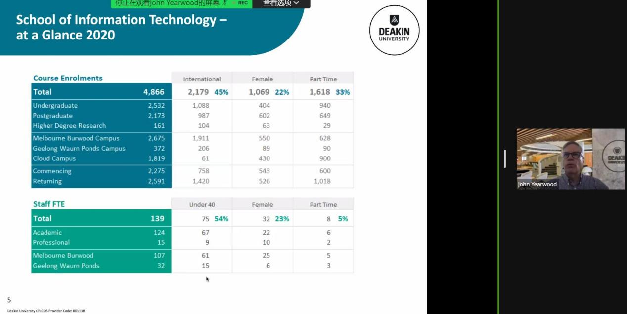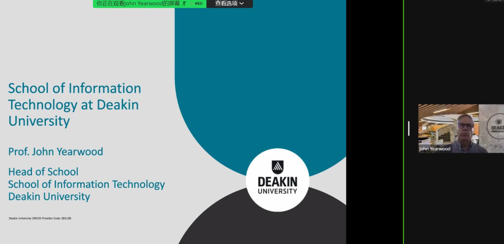 2022年11月11日上午10点,由我校与澳大利亚迪肯大学(Deakin University)合作举办的软件工程专业本科教育项目在线上召开了2022级新生澳方见面会。出席会议的有迪肯大学信息技术黄漫