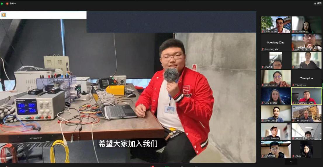 交流阶段,在西澳大学攻读博士的自动化专业学长郄天皓也为大家精心制作了视频,分享了其在西澳大学的学习生活,并给大家介绍了西澳大学自动化专业教学特色。学生们对合作办学项目表现出浓厚兴趣,提出很多有关“3+2”项目、出国留学、澳洲生活方式等问题,中外双方的老师们耐心给2022级新同学们一一解答。最后,在互动答疑和合照活动的完成中,此次会议圆满结束。