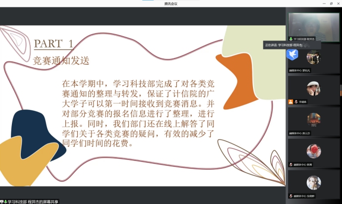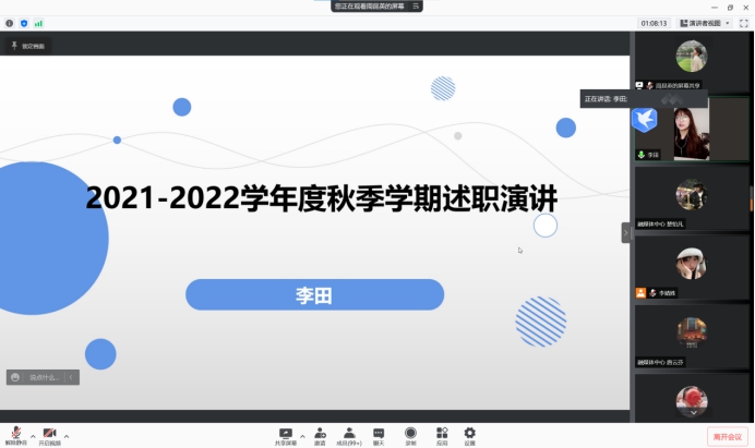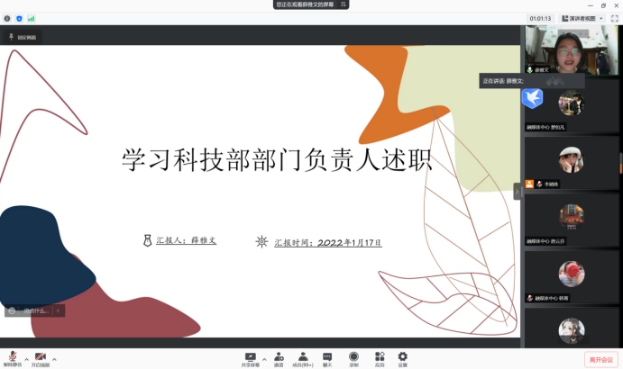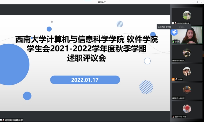 2021—2022学年学生会述职评议会在腾讯会议召开。黄漫