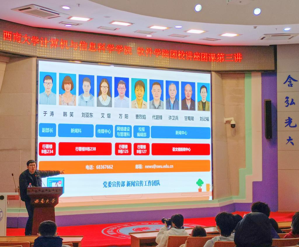 2021年12月12日上午9:30,我院在25教一楼报告厅举行以“新媒体宣传技巧”为主题的团校第三次讲座。参与本次会议的有黄漫