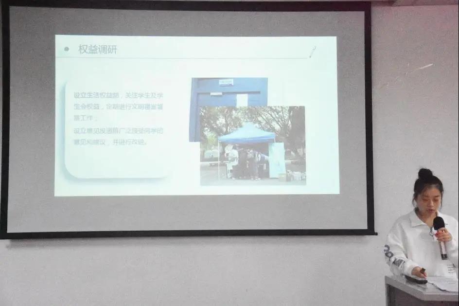 团委书记邵羽西老师作总结,她讲道,学生会是党领导下的学生组织,是联系广大同学的桥梁和纽带。希望新一届学生会以全心全意为同学服务为宗旨,为同学们的学业发展、身心健康、成才成长提供更加有益的帮助。