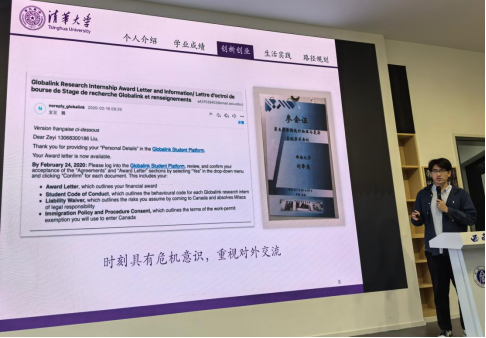 随后,2017级校友、清华大学博士生刘泽夷同学从自身推免经历以及在清华大学的学习体验进行分享。对于学业发展,他讲到要重视课程学习,本科阶段学习的知识可以为后续博士研究阶段打下坚实的基础;关于创新实践,他建议同学们在大一阶段多参加学科竞赛,从中找到可以并肩作战的队友,开展长期的竞赛训练与合作;学长还特别强调要找到学业与生活的平衡点,大学应该是丰富多彩的,他鼓励同学们走出寝室、走出教室,多多参与学生工作、体育锻炼,在松弛有度中得到成长。
