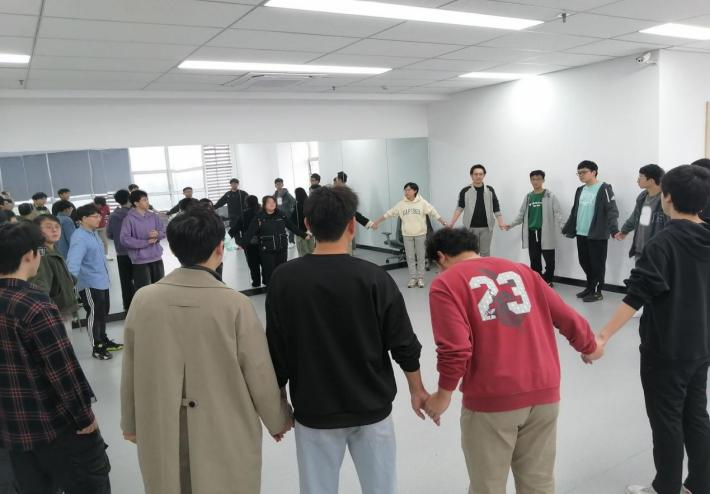 下午三点,“心随身动,释放解压”团体辅导活动拉开序幕。在冯夏老师引导下,同学们首先进行“盲人”带领与镜像体验的热身活动,大家迅速适应了活动节奏。
