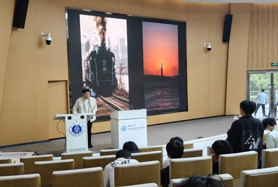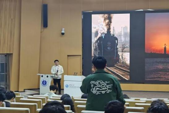 王煜翔首先分享自己对于拍照的个人见解,他从设备使用的变化说起,分析不同设备的优势与缺点,然后向大家展示自己运用不同设备在世界各地捕捉到的精彩瞬间,如蒸汽机车、青岛奥帆中心、重庆轻轨站等。他提出不同的风景需要采用与之适配的构图方式,通过裁剪、旋转画面以及将主体置于画面中央等手法,能够更好地凸显摄影作品的艺术魅力,并鼓励同学们在摄影实践中探索个性化表达。