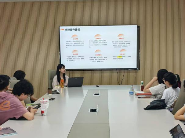 整场分享会内容详实、条理清晰,贺靖雯同学始终保持着饱满的热情,她时而站在白板前板书教学,时而穿梭在讲台前答疑解惑,让大家受益匪浅,课程结束后,不少同学围上前继续请教问题。