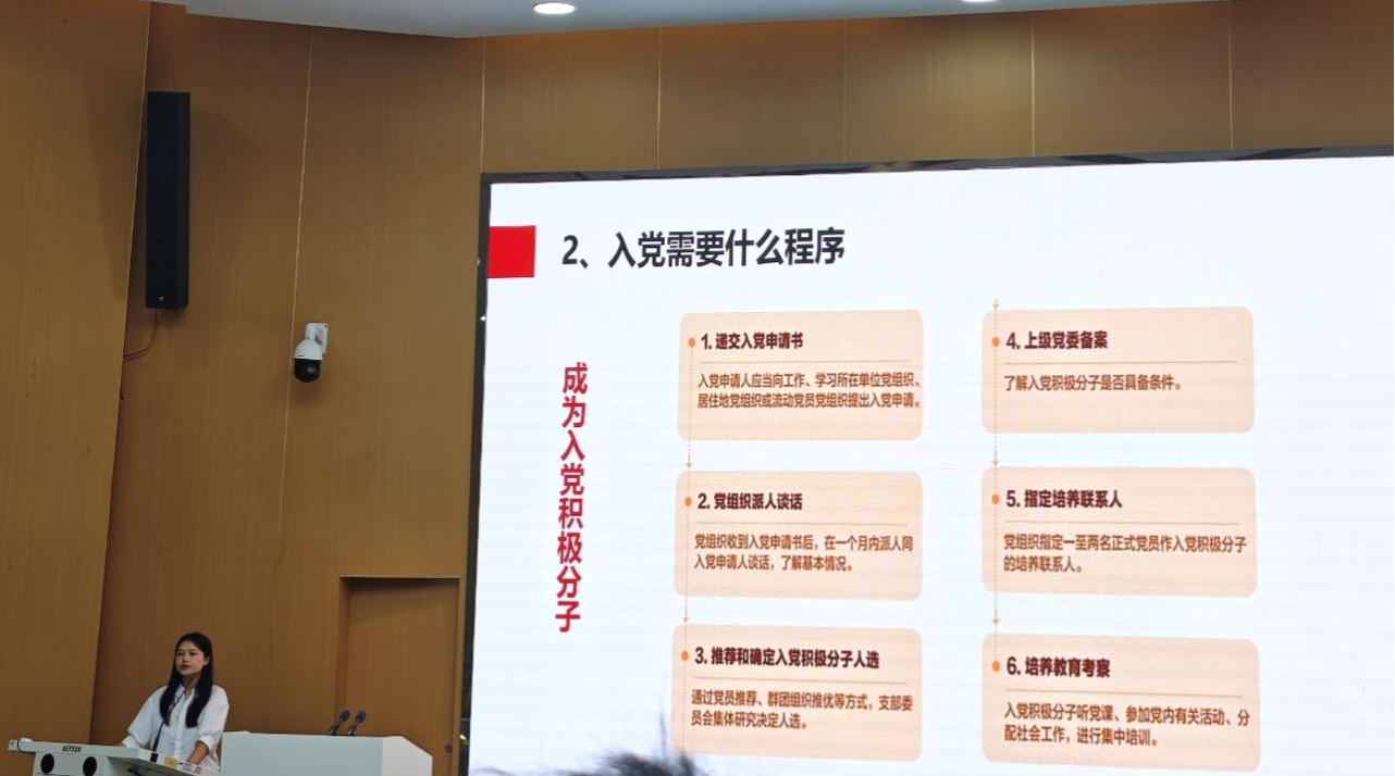 党课上还详细解读了入党流程五阶段,细致入微地介绍了党员发展的各个环节,同时详细介绍了入党推荐的具体程序及相关文件要求。