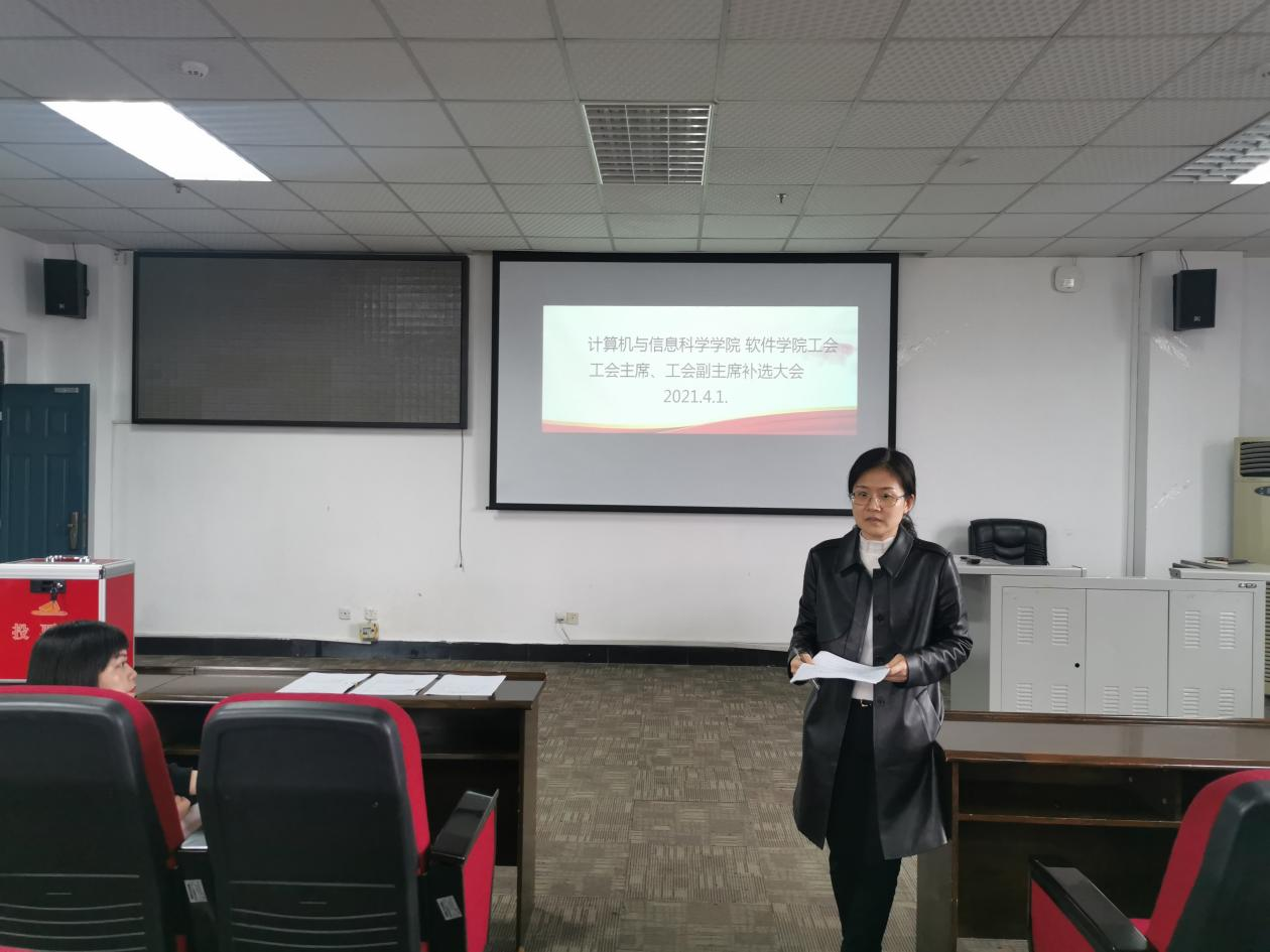 工会主席陶丽首先介绍补选的背景和要求,因黄漫