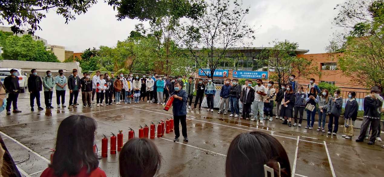 组织2022级新生代表开展了灭火器消防演练活动,部分实验室老师参加了演练活动。