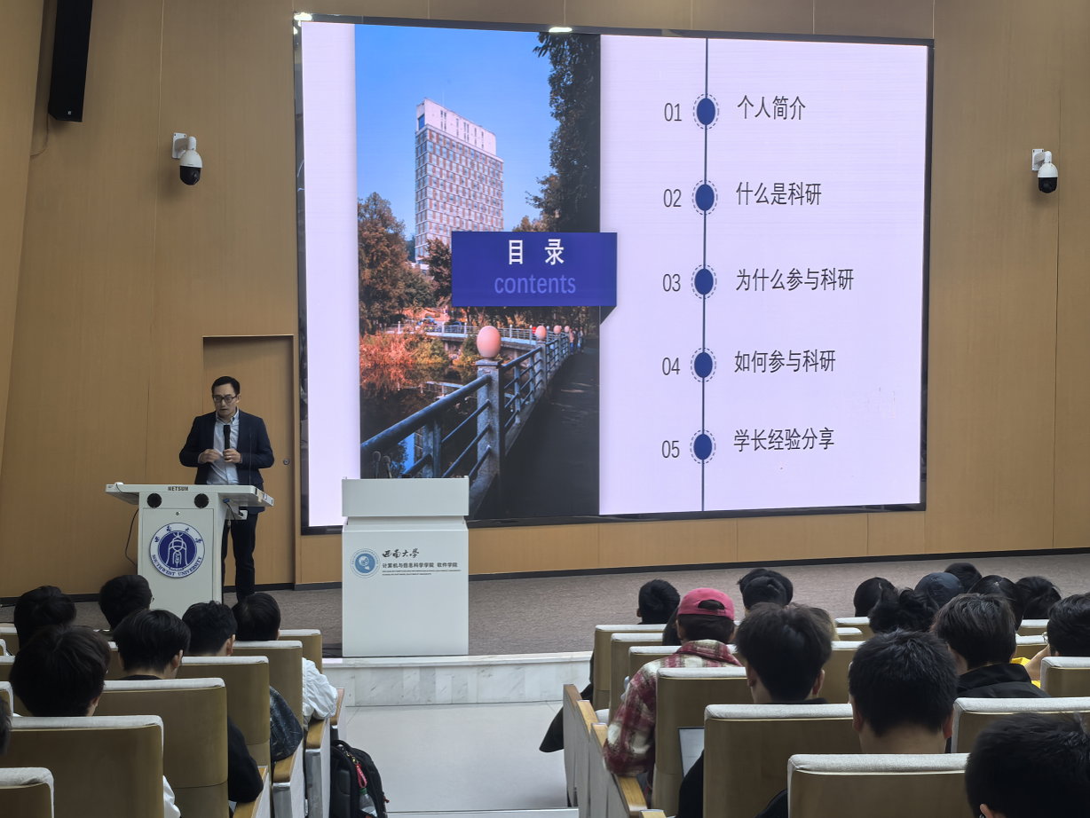 近日,一场融合科研启蒙与求职指导的课程——《专业导论与个人发展管理》在2024级软件工程专业精彩展开。课程邀请黄漫 黄兵姚教授和高年级优秀学子担任嘉宾,通过深入的科研探索讲解与丰富的求职实战经验分享,旨在为同学们构建起连接科研殿堂的坚实桥梁,并铺设出通往理想工作岗位的宽广道路。黄兵姚老师从“科研是什么...