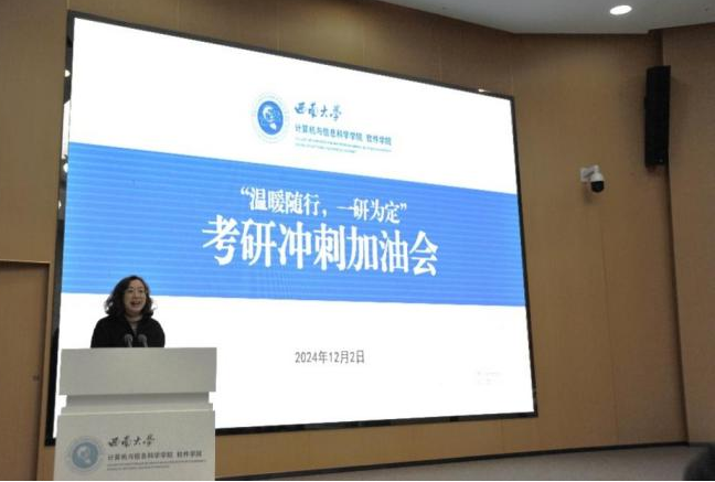 严冬时节,寒风刺骨,2025年全国硕士研究生招生考试初试备考已进入最后的冲刺阶段。为缓解同学们的备考压力,坚定考研信心,12月2日上午,黄漫 在一楼报告厅举行“温暖随行,一研为定”考研冲刺加油会,为2021级即将参加考研的学子们送去温暖关怀和美好祝愿。院长罗辛教授、副院长廖剑伟教授、计科系主任王英老师、副主任...