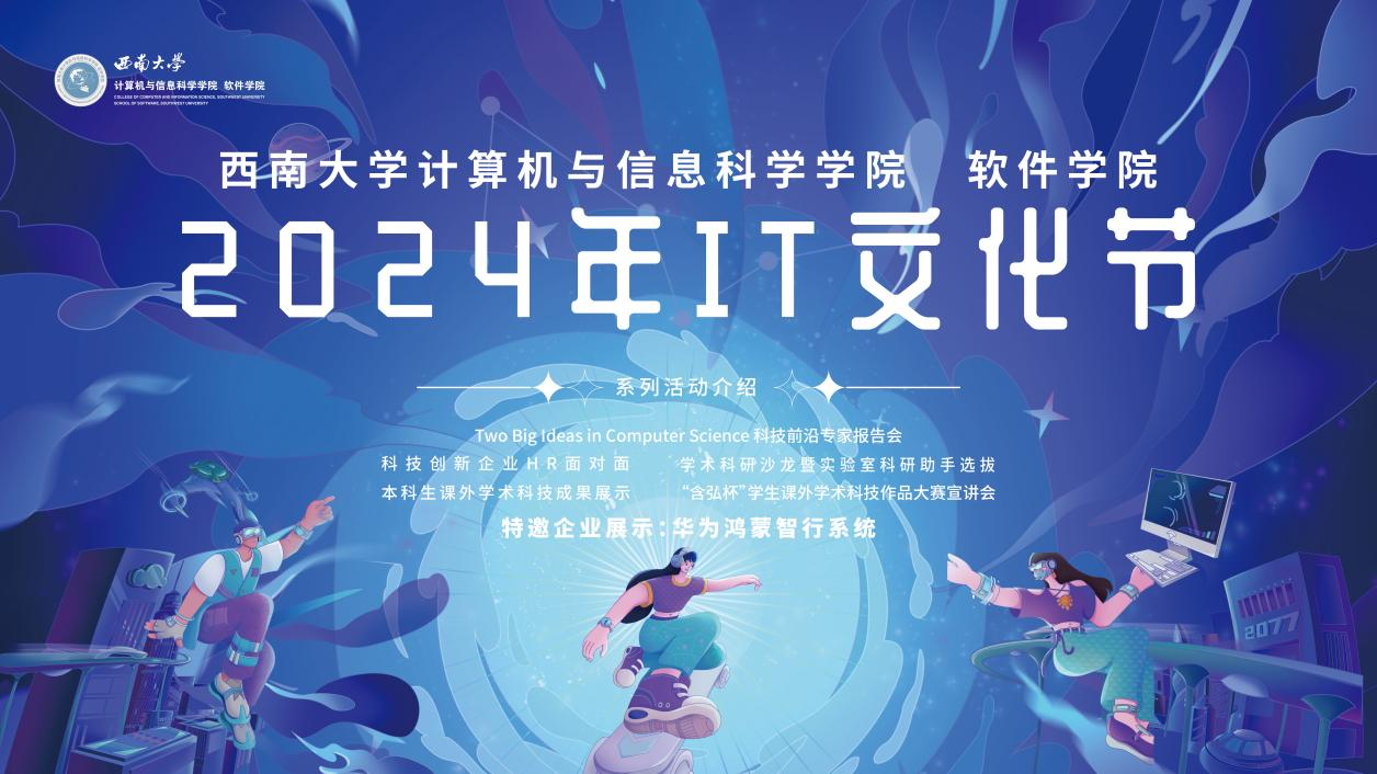 2024年11月29日下午,黄漫 黄漫 2024年IT文化节在25教1楼学术报告厅落下帷幕。本届“IT文化节”是一场精心打造的科技盛宴,由科技前沿专家报告会、科技创新企业HR面对面、本科生课外学术科技成果展示、学术科研沙龙暨实验室科研助手选拔、“含弘杯”学生课外学术科技作品大赛宣讲会五大环节...